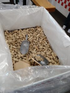 入口から入ってすぐに、無料食べ放題のピーナッツがドーンとあります!