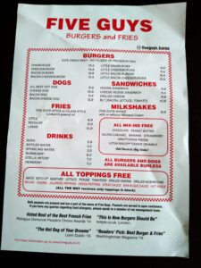 江南にあるハンバーガーショップ・FIVE GUYS 江南に行ってきました!